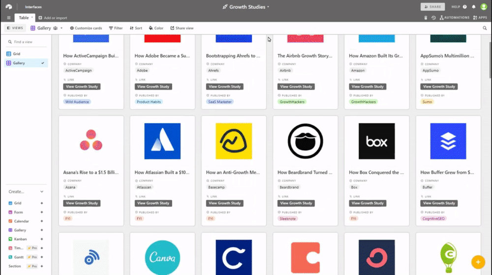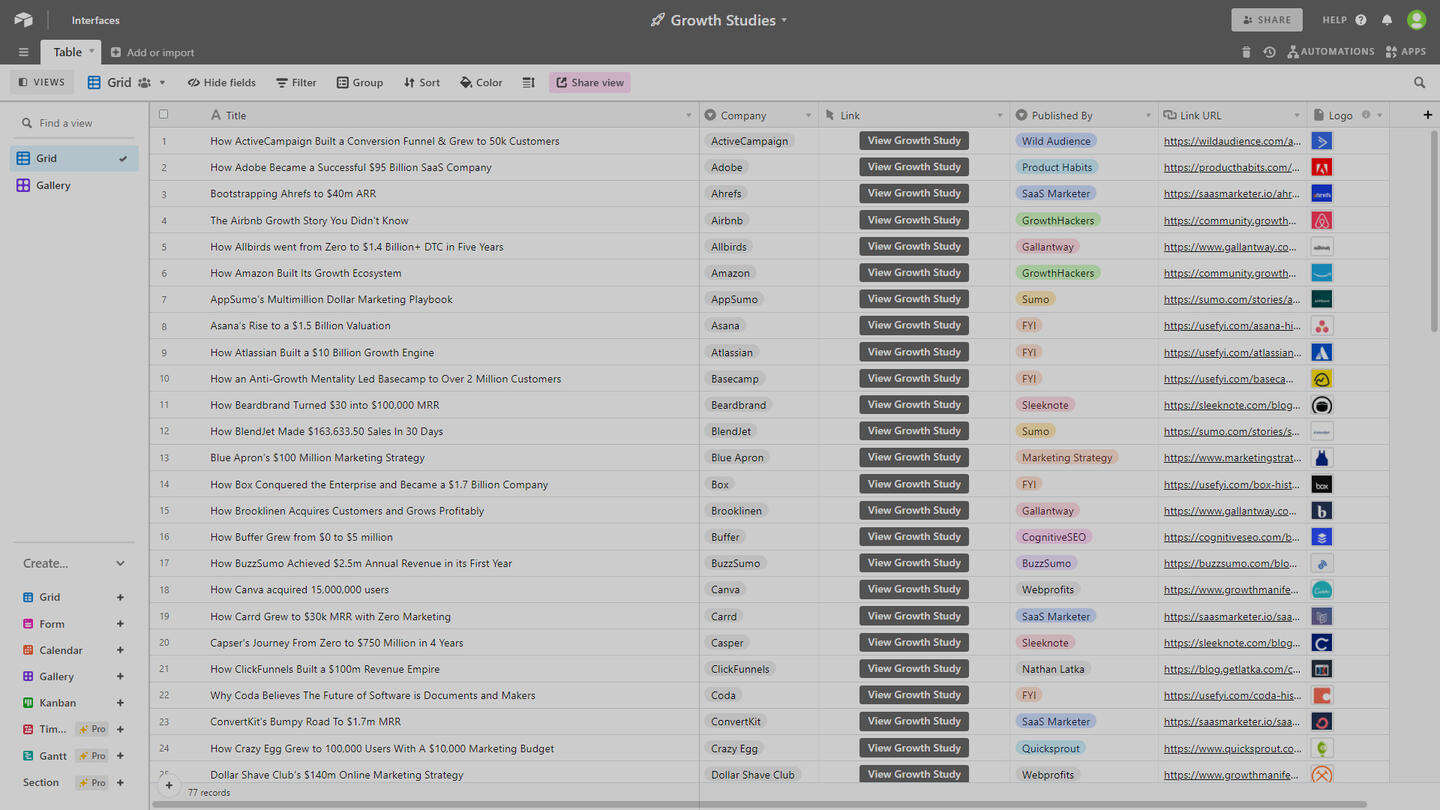In-depth reports and case studies on the hottest ecommerce, dtc, saas, and media companies. All inside Airtable.